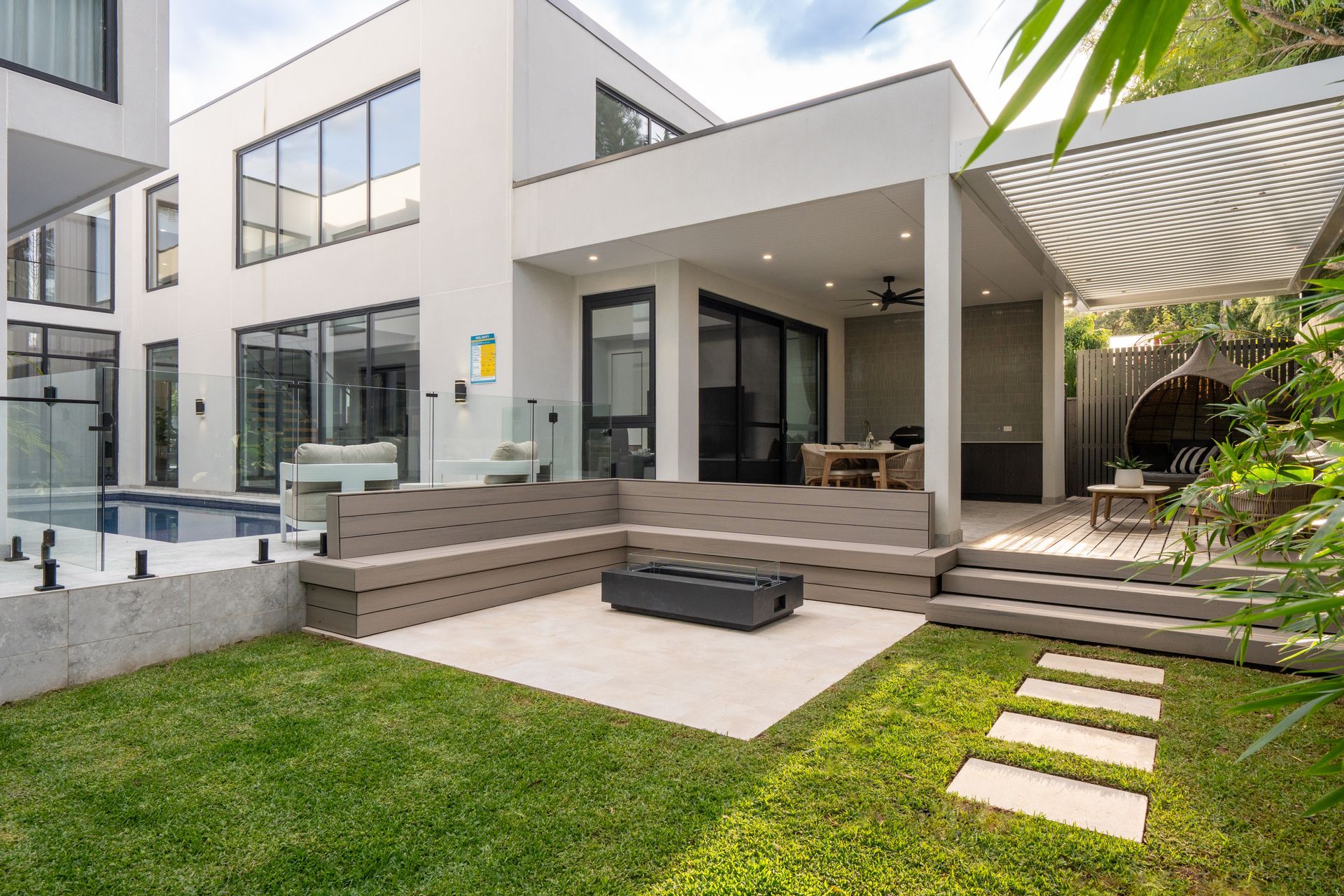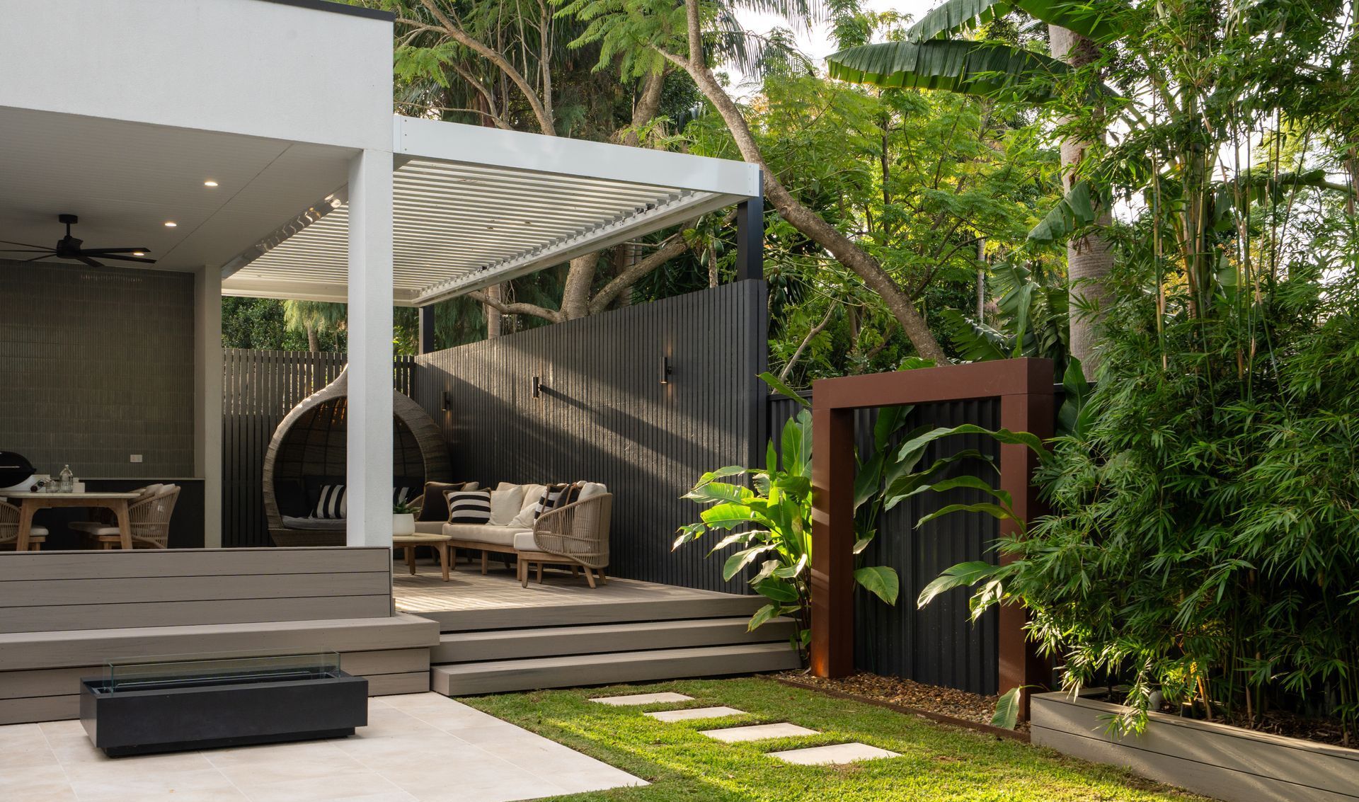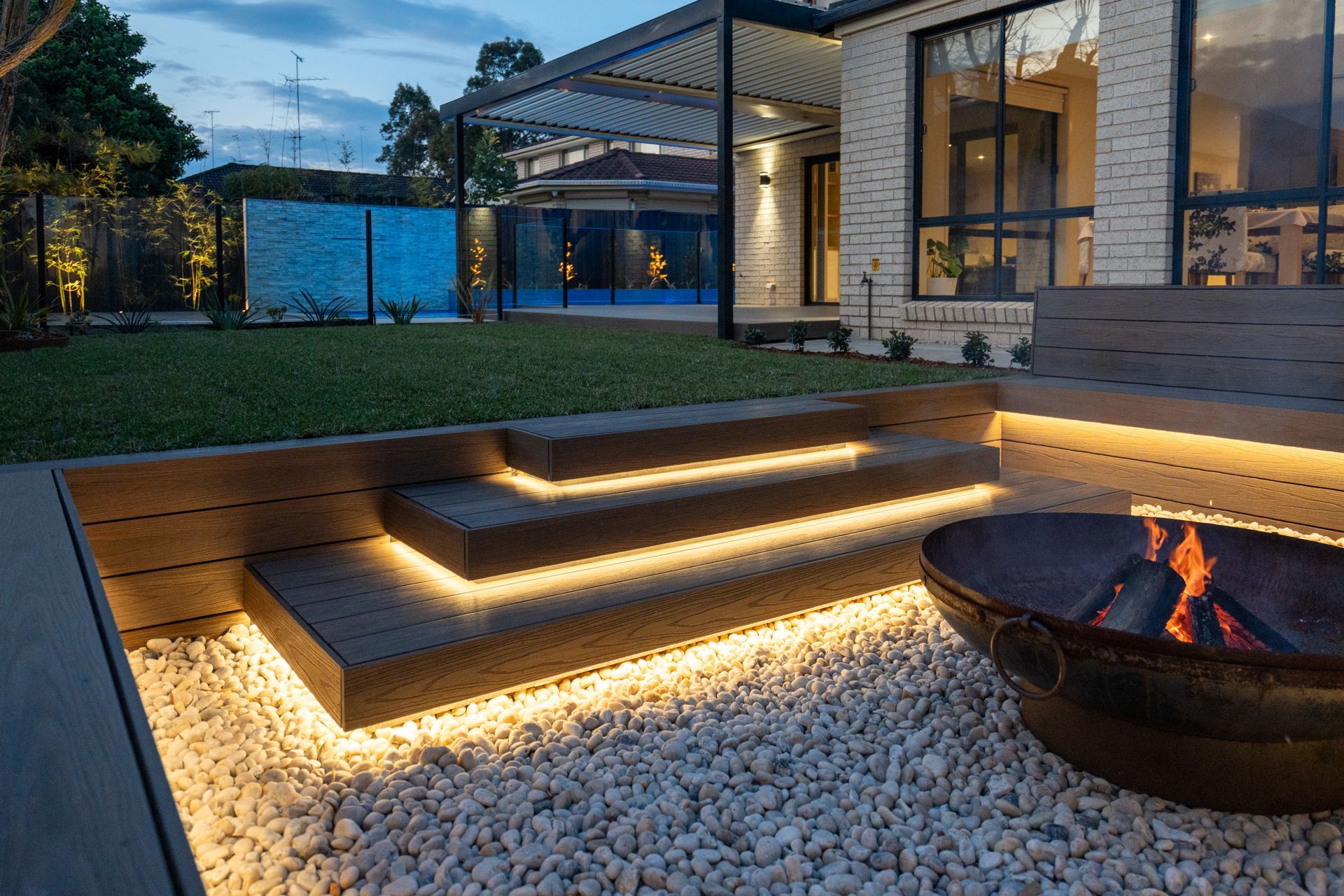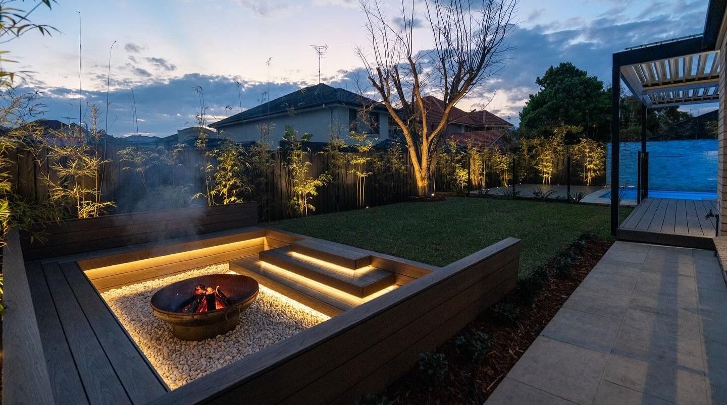 Modern Landscape Creations recently completed an award winning, full front and backyard renovation at a stunning modern home in Castle Hill, bringing the outdoor space in line with the sleek architecture of the home. The goal was to deliver a streamlined, functional, and visually cohesive landscape that complements the home’s contemporary design and elevates everyday outdoor living. Here’s a look at the standout features of this modern landscape transformation: A dedicated firepit area was created, built with durable composite decking boards for a polished, low-maintenance finish. This space offers a cosy atmosphere for entertaining, complete with seating and a sleek, modern design that ties into the overall aesthetic of the home. An outdoor dining and casual seating area provides everything needed for effortless alfresco entertaining. With integrated appliances, bench space, and room for a large dining setup, this area encourages outdoor living year-round. Privacy screening was incorporated throughout the design, offering a stylish solution for seclusion without compromising airflow or light. These screens enhance the modern look of the landscape while delivering functionality. A motorised pergola was added to provide flexible coverage over the entertaining area. With the ability to adjust at the push of a button, the pergola offers shade during the day and opens to the stars at night—perfect for any weather. Fresh turf installation helped revive the garden space, giving the backyard a lush, vibrant finish. This soft green expanse balances the hardscape elements and creates a welcoming zone for kids and pets to enjoy. A striking dragon tree was planted as a feature piece, adding architectural flair to the garden. This sculptural plant pairs beautifully with the home’s modern lines and lighting. Feature lighting was used throughout to highlight key elements such as the decking, firepit, and plantings. These carefully placed lights not only boost safety and visibility but also transform the space after dark with a soft, ambient glow. The end result is a bold, functional outdoor space that mirrors the elegance of the home itself. From relaxing by the firepit to hosting family meals under the pergola, every corner has been carefully considered to maximise comfort, style, and usability. At Modern Landscape Creations, we specialise in high-quality landscape construction across the Hills District, and we’re proud to help homeowners bring their outdoor visions to life. Whether you’re looking for a full renovation or a simple update, we’re here to deliver exceptional results that reflect your lifestyle and taste.
